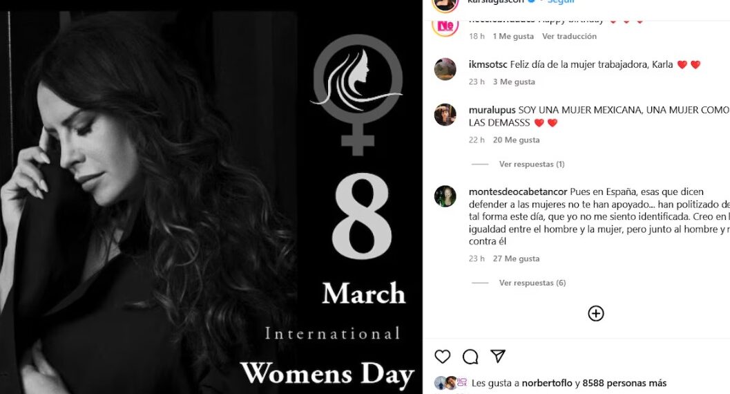 El Día Internacional de la Mujer, conmemorado el 8 de marzo, fue la fecha elegida por la actriz española Karla Sofía Gascón para compartir un mensaje de reflexión y lucha en sus redes sociales. A través de su cuenta de Instagram, la intérprete publicó una fotografía en blanco y negro acompañada de un texto en el que resaltó la importancia de la igualdad y el respeto a los derechos de las mujeres en todo el mundo.