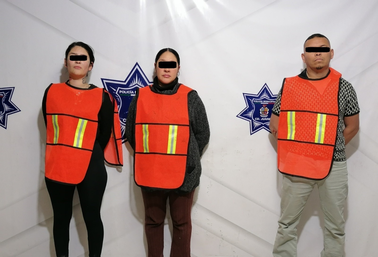 Ciudad Juárez, Chihuahua (10 de marzo de 2025).- Elementos de la Secretaría de Seguridad Pública Municipal (SSPM) arrestaron a Frida Nicole C., Ulises H. A. y Mayra C. C. por su presunta responsabilidad en los delitos de lesiones dolosas y robo en la colonia Las Gladiolas.