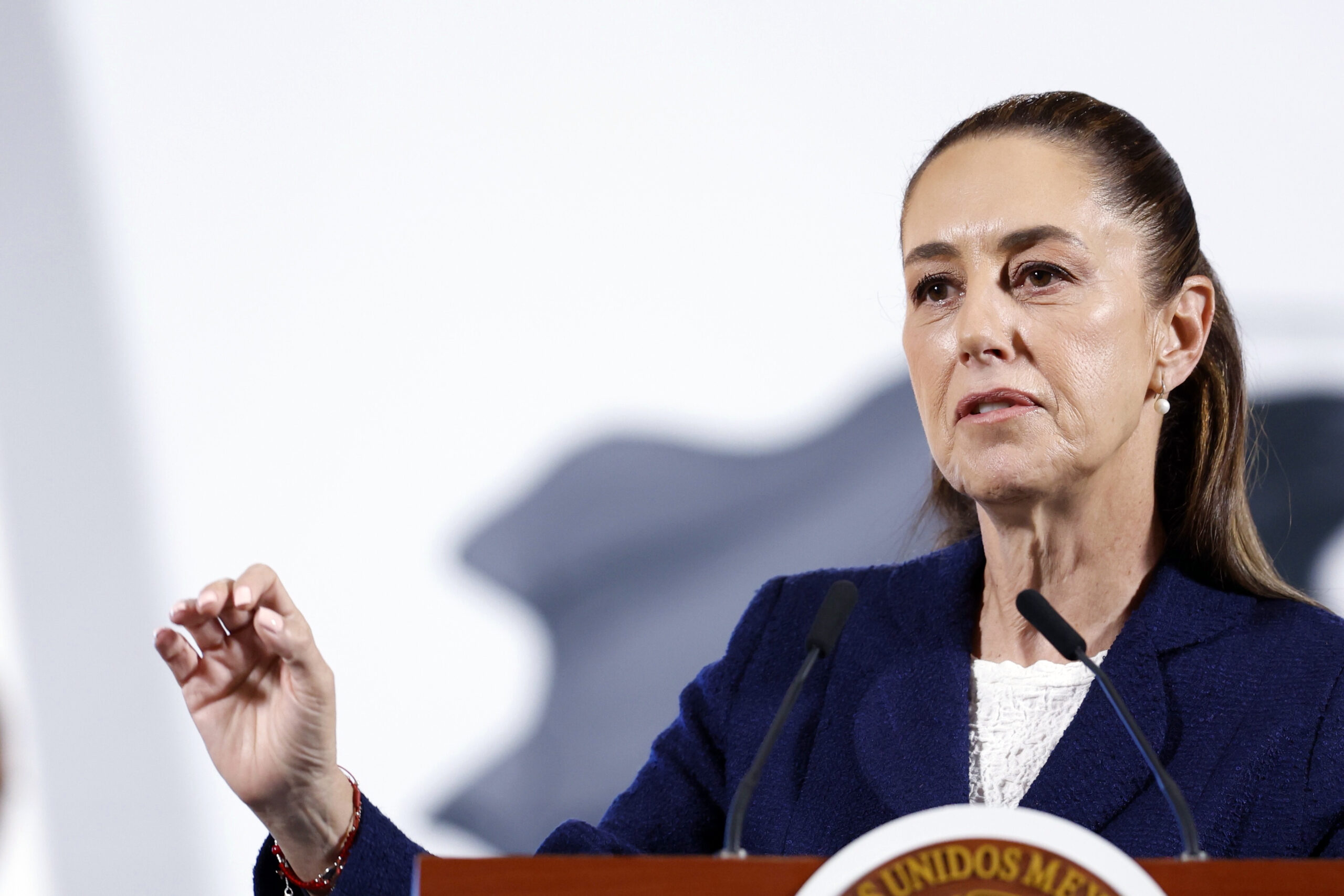 Ciuidad de México.- La presidenta de México, Claudia Sheinbaum, habla durante su rueda de prensa matutina este lunes, en Palacio Nacional en Ciudad de México (México). Sheinbaum adelantó que enviará una carta al gobierno de Estados Unidos en respuesta a congresistas estadounidenses que pidieron al presidente, Donald Trump, exigir a la mandataria mexicana una resolución a favor de la minera Calica, filial de la estadounidense Vulcan Materials, por una disputa en el sureste del país.
