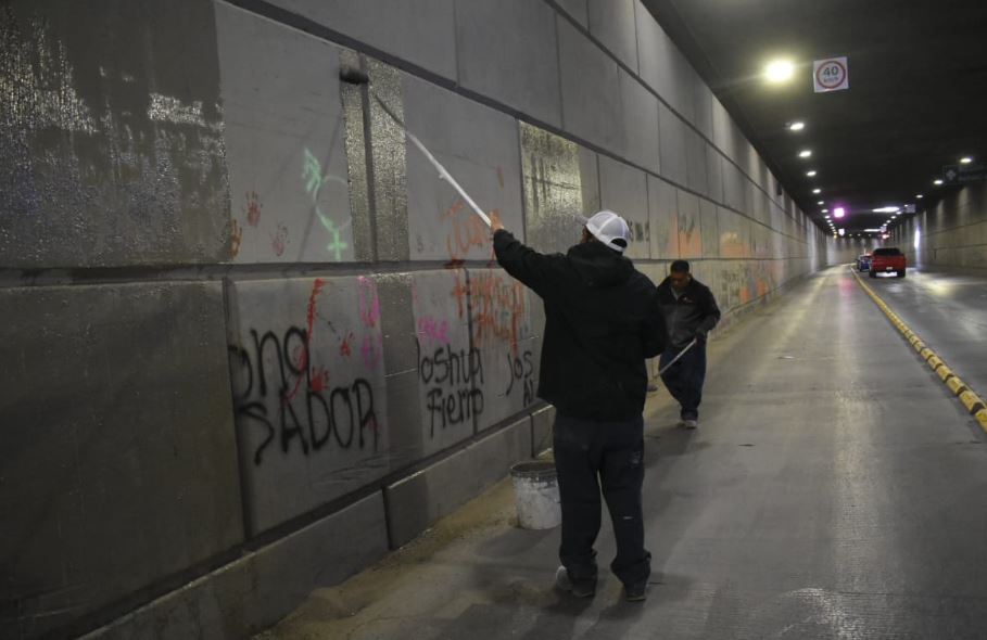 Borran grafitis en paso a desnivel del Centro Histórico tras manifestaciones