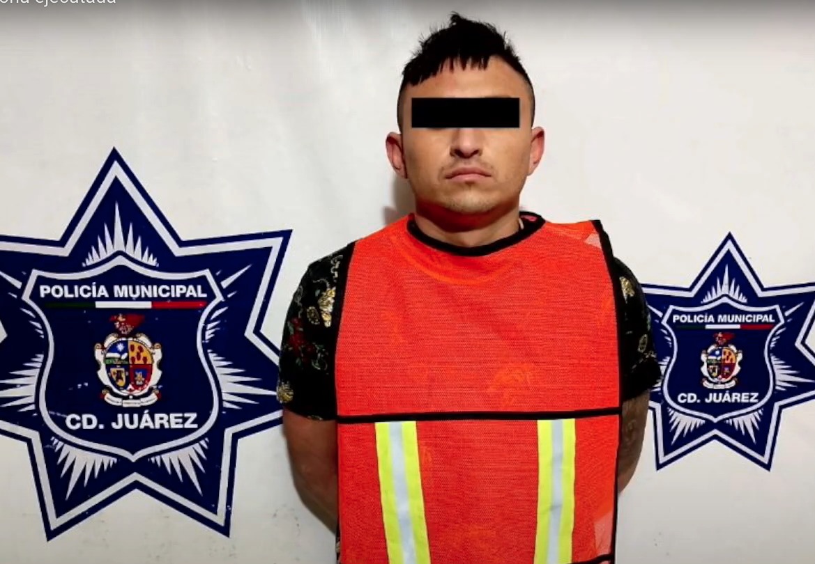 Ciudad Juárez, Chihuahua.- Elementos de la Secretaría de Seguridad Pública Municipal lograron la captura de Bryan Enrique G., de 26 años, por su presunta responsabilidad en el delito de posesión de vehículo con reporte de robo. Además, será investigado por su posible participación en un homicidio.