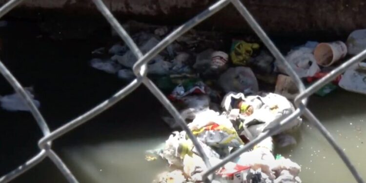 Desconocidos depositaron la bolsa en las aguas ubicadas en la Acequia Madre, provocando la preocupación de vecinos que tienen sus casas en el cruce de las calles Azucenas y Plata.