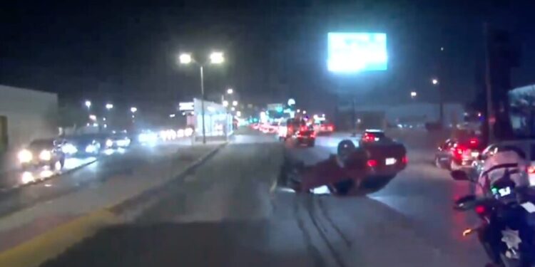 De acuerdo con los primeros reportes, las llantas del automóvil patinaron, lo que hizo que el conductor perdiera el control del vehículo, terminando volcado sobre el carril confinado. El automóvil quedó con las llantas mirando hacia el cielo, bloqueando parte de la vialidad.