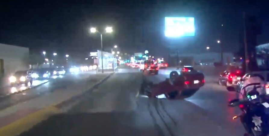 Ciudad Juárez, Chihuahua.- La mañana de este martes 18 de marzo, un vehículo Volkswagen de color rojo sufrió una volcadura en la Avenida Tecnológico, en los carriles de norte a sur.