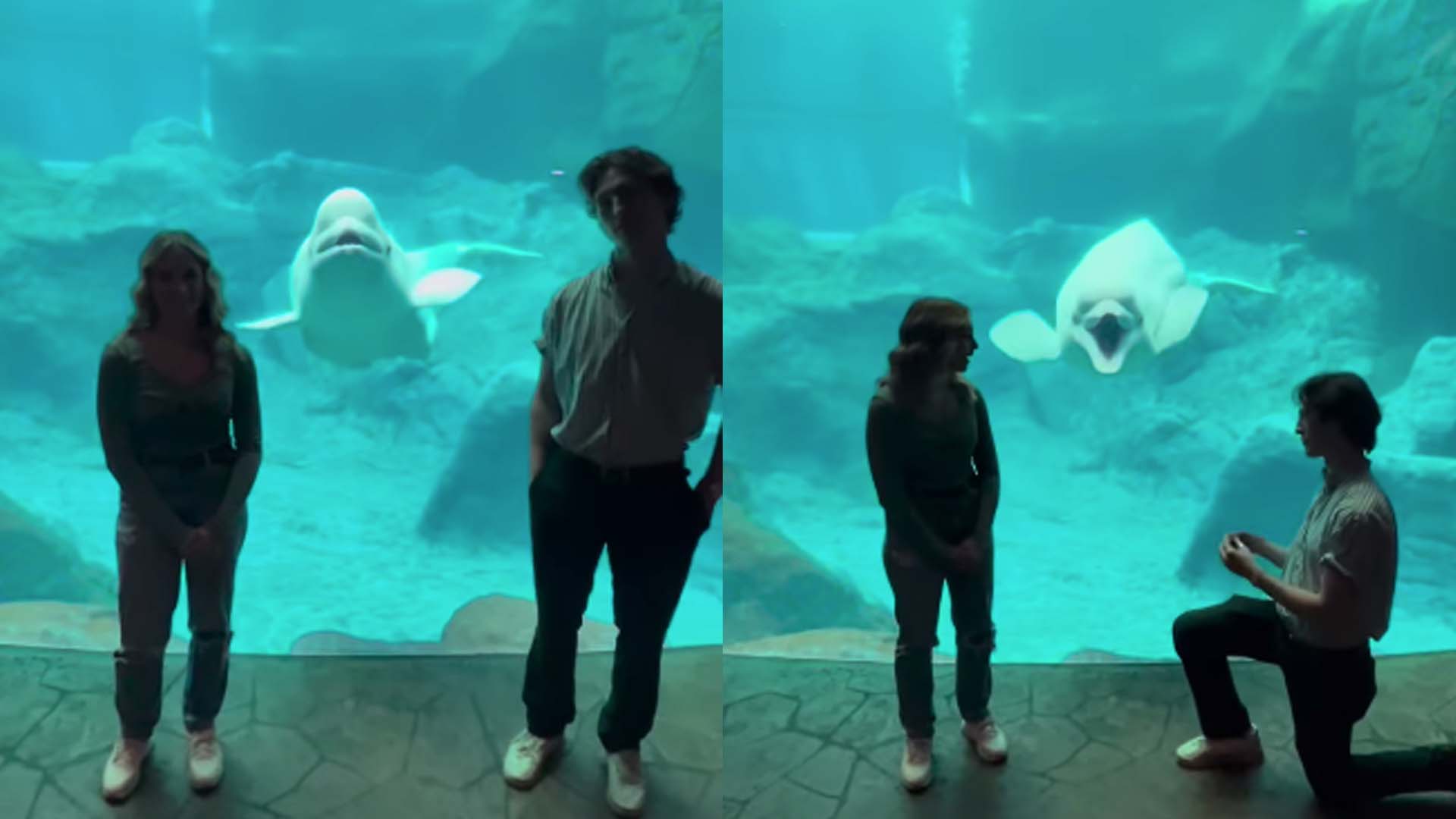 Un conmovedor video ha captado la atención de millones de usuarios en redes sociales luego de que una ballena beluga pareciera reaccionar de manera inesperada a una propuesta de matrimonio.