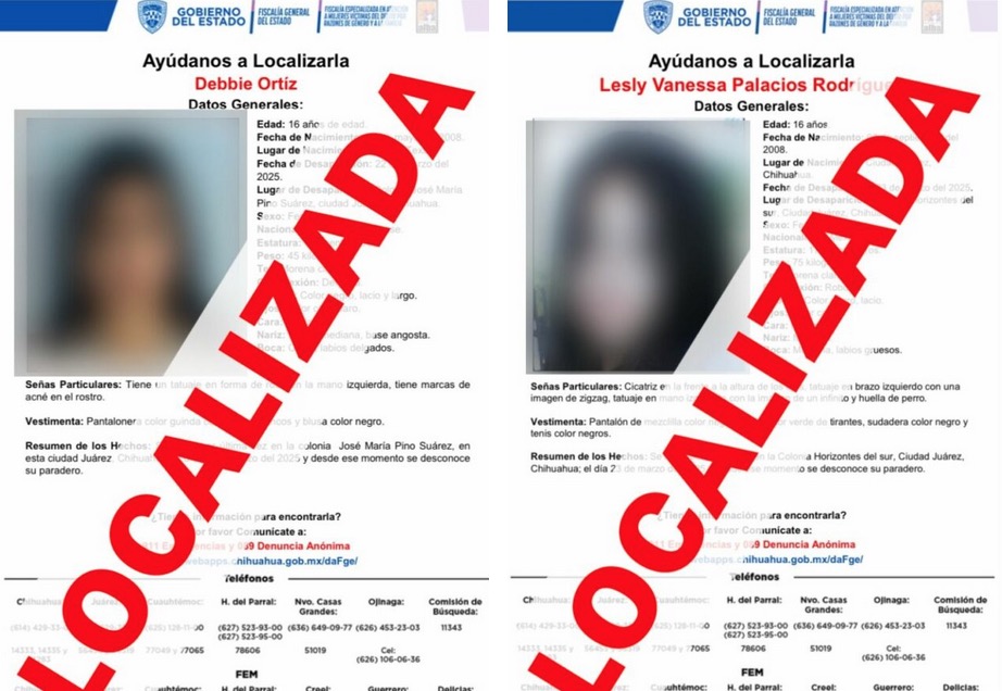 Ciudad Juárez. – La Fiscalía Especializada en Atención a Mujeres Víctimas del Delito por Razones de Género y a la Familia (FEM) logró localizar a dos menores de 16 años de edad que estaban reportadas como ausentes en la ciudad. Tras aplicar los protocolos de búsqueda, realizar tareas de inteligencia y llevar a cabo operativos permanentes, las adolescentes fueron localizadas sanas y salvas.