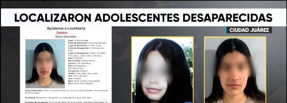 Ciudad Juárez, Chihuahua.- Localizan a dos adolescentes reportadas como desaparecidas en diferentes colonias de nuestra ciudad.