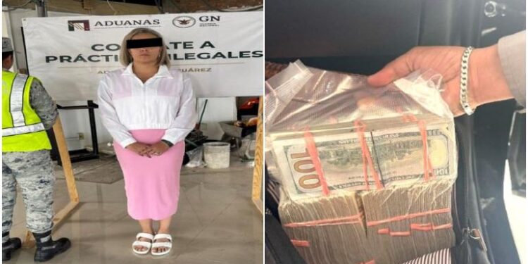 Ciudad Juárez, Chihuahua.– Una mujer de nacionalidad estadounidense fue detenida por autoridades mexicanas al intentar ingresar a Ciudad Juárez por el Puente Internacional Zaragoza, transportando casi 300 mil dólares en efectivo sin declarar.