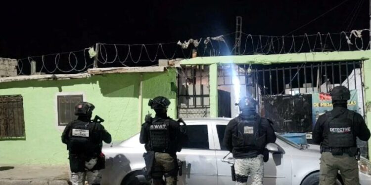 Las acciones policiales se desarrollaron en domicilios que se encuentran en diferentes direcciones, como en la calle Helipuerto, #7029, colonia Jardines del Aeropuerto, calle Caborca, #968, colonia Renovación 92, calle Mimbre e Isla Saboga, de la colonia Fronteriza, entre otras.