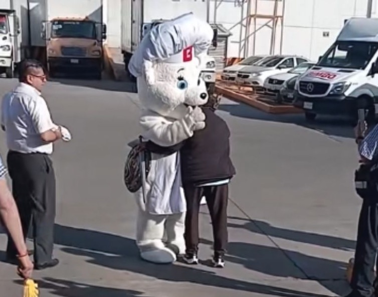 El clip fue compartido por la usuaria Yadys Castillo, quien documentó el momento en que Ubaldo se retira de las instalaciones de la planta ubicada en el Aeropuerto de Toluca. Entre aplausos, una corona de papel en la cabeza y con evidente gratitud, el trabajador fue sorprendido por la botarga del osito Bimbo, que le ofreció un abrazo y una reverencia que conmovió a todos los presentes.