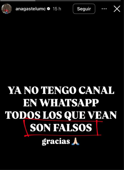 Con el fin de aclarar la situación, Ana Gastélum reapareció en Instagram, donde desmintió los rumores y pidió a sus seguidores no unirse a cuentas falsas. A través de una historia, la influencer explicó que ya no tiene canales de difusión y que cualquier cuenta asociada a su nombre podría estar siendo gestionada por terceros.