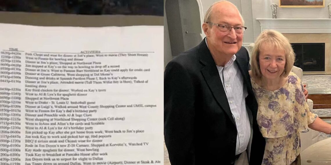 Kayla encontró el cuaderno mientras revisaba los archivadores, y lo que en un principio parecía ser una simple libreta resultó ser un detallado archivo de momentos compartidos entre Jim y Kay, desde citas románticas hasta pequeñas actividades cotidianas. “Lo abrí y era un montón de registros”, relató Kayla en una entrevista con People. “Con los años, él anotaba fechas, y aunque algunas no eran muy significativas, había una belleza en las cosas simples, como ‘preparé palomitas y lavé la ropa’”, explicó, destacando cómo los pequeños actos de amor se convirtieron en recuerdos preciosos. Para ella, el cuaderno reflejaba lo que siempre supo de su abuelo: una persona meticulosa, organizada y atenta a los detalles.