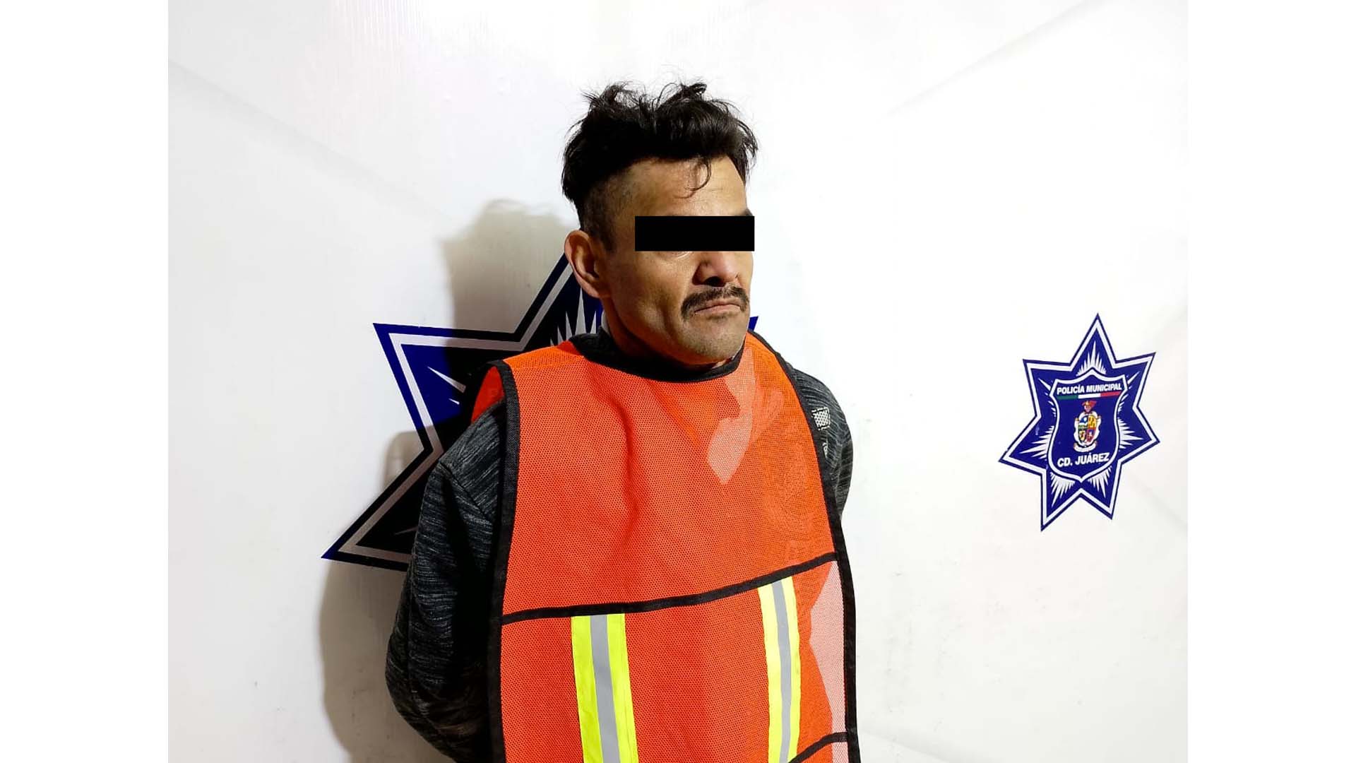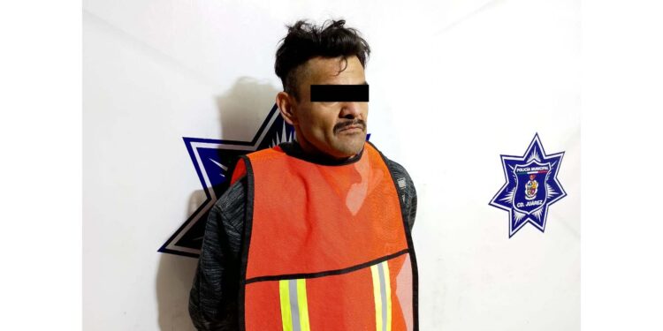 Ciudad Juárez, Chihuahua.- Elementos de la Secretaría de Seguridad Pública Municipal adscritos en la Estación de Policía del Distrito Sur, arrestaron a un sujeto identificado como Jesús Martín E. G., por su presunta responsabilidad en la comisión del delito.