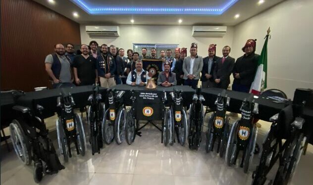 Ciudad Juárez, Chihuahua.- El Club Rotario 20-30 donó 10 sillas de ruedas al Juárez Shrine Club, que las enviará a la clínica Shriner de Chihuahua. Estas sillas beneficiarán a niños con movilidad reducida que reciben atención médica especializada en esa institución.