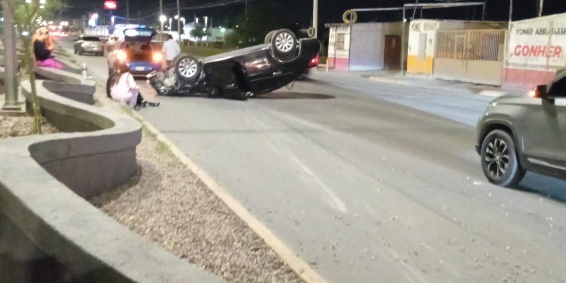 Ciudad Juárez, Chihuahua.- Un fuerte accidente vial se registró en Ciudad Juárez luego de que un conductor volcara su automóvil tras perder el control por conducir a exceso de velocidad.