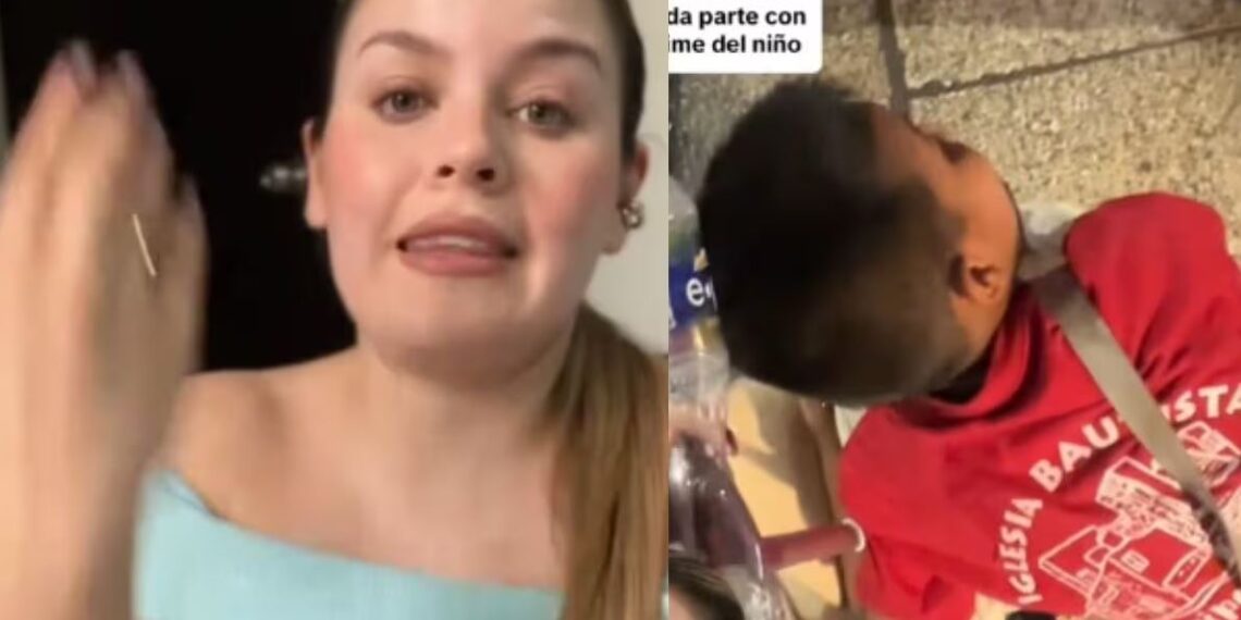 La joven, identificada como Emma, relató que mientras caminaba acompañada de amigos, sintió un peso extraño en su maleta. Al girar, se dio cuenta de que un niño estaba trepado sobre ella, mirándola desafiante y reclamándole: