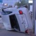 Conductora se vuelca tras ser presionada por escoltas en carril confinado del Juárez Bus