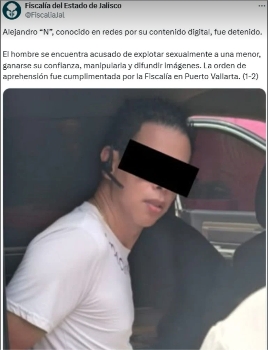 México.- La detención del creador de contenido para adultos Alex Marín, también conocido como Alejandro “N”, ha causado conmoción en redes sociales y entre sus seguidores. El influencer fue arrestado por autoridades de Jalisco acusado de delitos de trata de personas y explotación sexual.