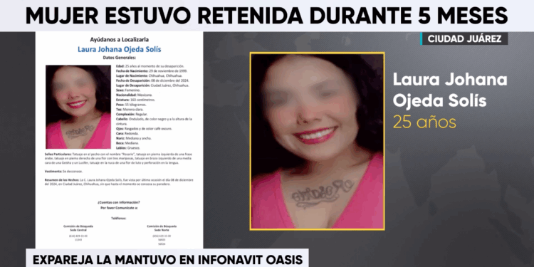 Ciudad Juárez, Chihuahua.- Una joven identificada como Laura Joana Ojeda Solís, de 25 años, fue rescatada por elementos de la Policía Municipal luego de haber permanecido privada de su libertad durante cinco meses por su expareja sentimental.