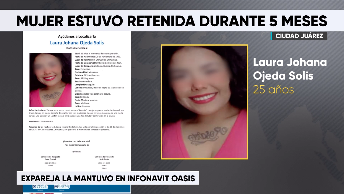 Ciudad Juárez, Chihuahua.- Una joven identificada como Laura Joana Ojeda Solís, de 25 años, fue rescatada por elementos de la Policía Municipal luego de haber permanecido privada de su libertad durante cinco meses por su expareja sentimental.