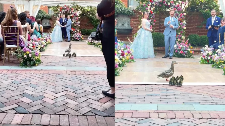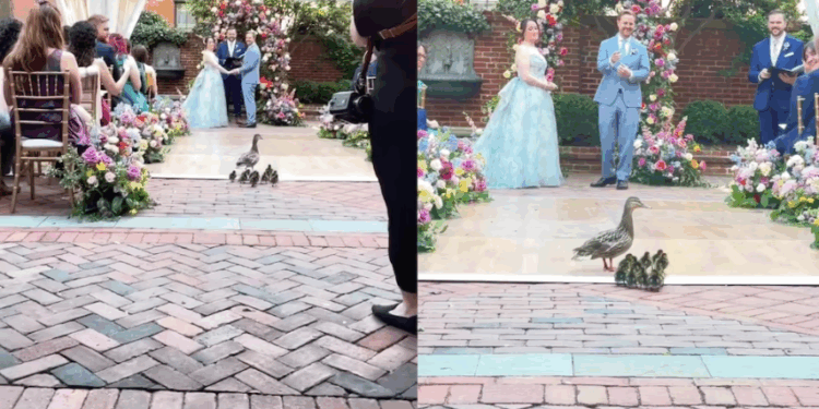 Un insólito y conmovedor momento protagonizado por una familia de patos se ha robado el corazón de miles de internautas tras irrumpir en plena ceremonia nupcial en Estados Unidos.