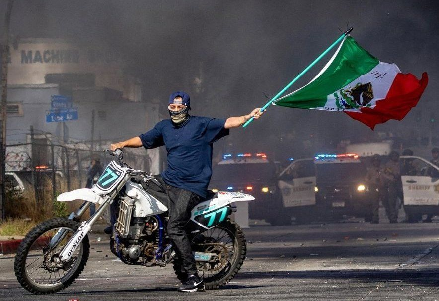 La imagen del motociclista se volvió viral, interpretada por muchos como un acto de resistencia y orgullo migrante, aunque también ha sido criticada como una provocación. Mientras tanto, el presidente Donald Trump exigió una intervención más firme por parte de las fuerzas de seguridad, y el gobernador de California respondió condenando el actuar del gobierno federal, al que acusó de intensificar el conflicto en lugar de buscar soluciones.