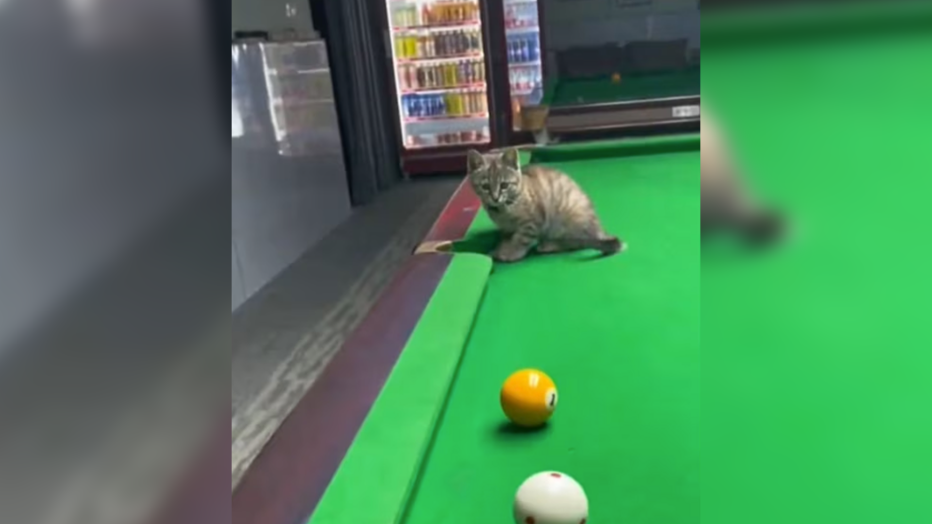 Gato viral sorprende en TikTok al meter bola de billar con precisión