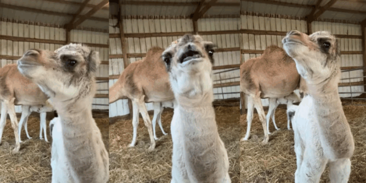 Misuri, EE.UU. – Un adorable momento protagonizado por Faye, una cría de camello nacida en una granja del sureste de Misuri, ha conquistado las redes sociales. En un video compartido en TikTok —que ya acumula millones de visualizaciones— el animal parece decir claramente “hey”, sorprendiendo por su similitud con un saludo humano.