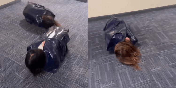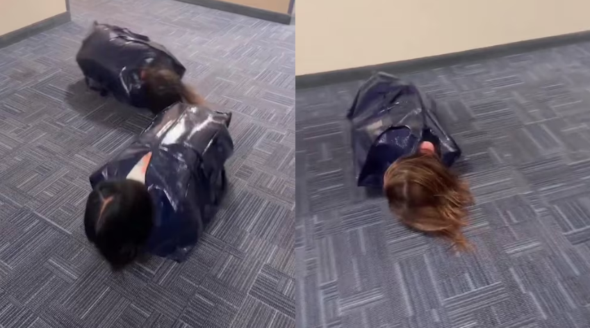 La usuaria @taurenkmitchell decidió romper las reglas no escritas del juego: mientras otros se arrastraban paso a paso, ella se dejó rodar completamente dentro del bolso, como si fuera un cilindro humano. La táctica fue tan efectiva como inesperada, llevándola a la victoria y a la viralidad.