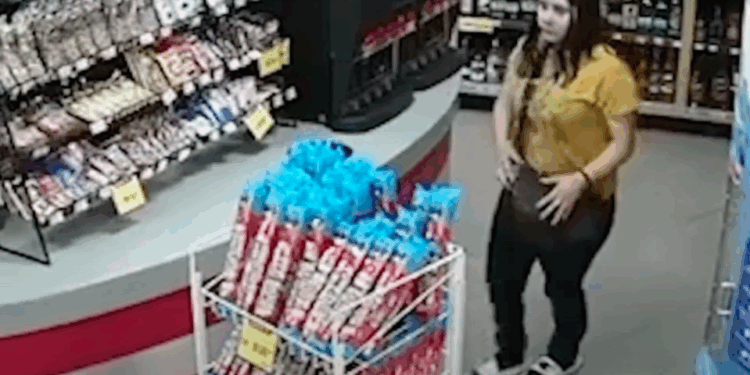 Las imágenes muestran cómo una de las implicadas intenta evitar ser captada por las cámaras, mientras la otra se dirige directamente al área de licores, toma una botella y la guarda en su bolso. Posteriormente ambas mujeres salen del local sin pagar.