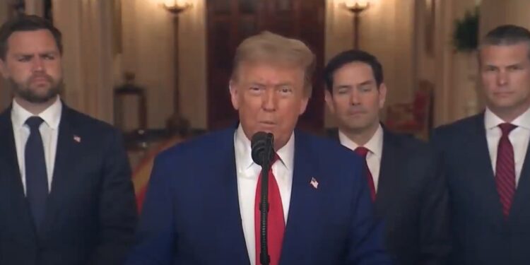 Washington.– El presidente de Estados Unidos, Donald Trump, se dirigió este sábado 21 de junio al país y al mundo para hablar sobre los ataques aéreos realizados por su gobierno contra tres instalaciones nucleares iraníes, calificados por él como una operación “muy exitosa”.