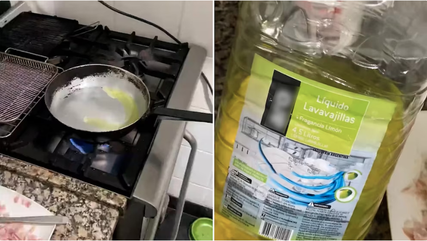 Una pareja argentina protagonizó un video que se volvió viral en TikTok luego de un insólito error doméstico. En la grabación, Celeste documenta el momento en que su novio Nicolás, mientras cocinaba, vertió accidentalmente lavavajillas en lugar de aceite sobre la sartén.