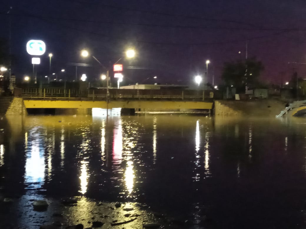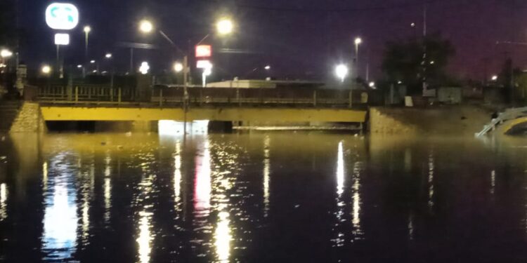 Ciudad Juárez, Chih. – Pese a las obras hidráulicas instaladas para evitar inundaciones, el paso a desnivel de la avenida Insurgentes volvió a colapsar ante las lluvias recientes.