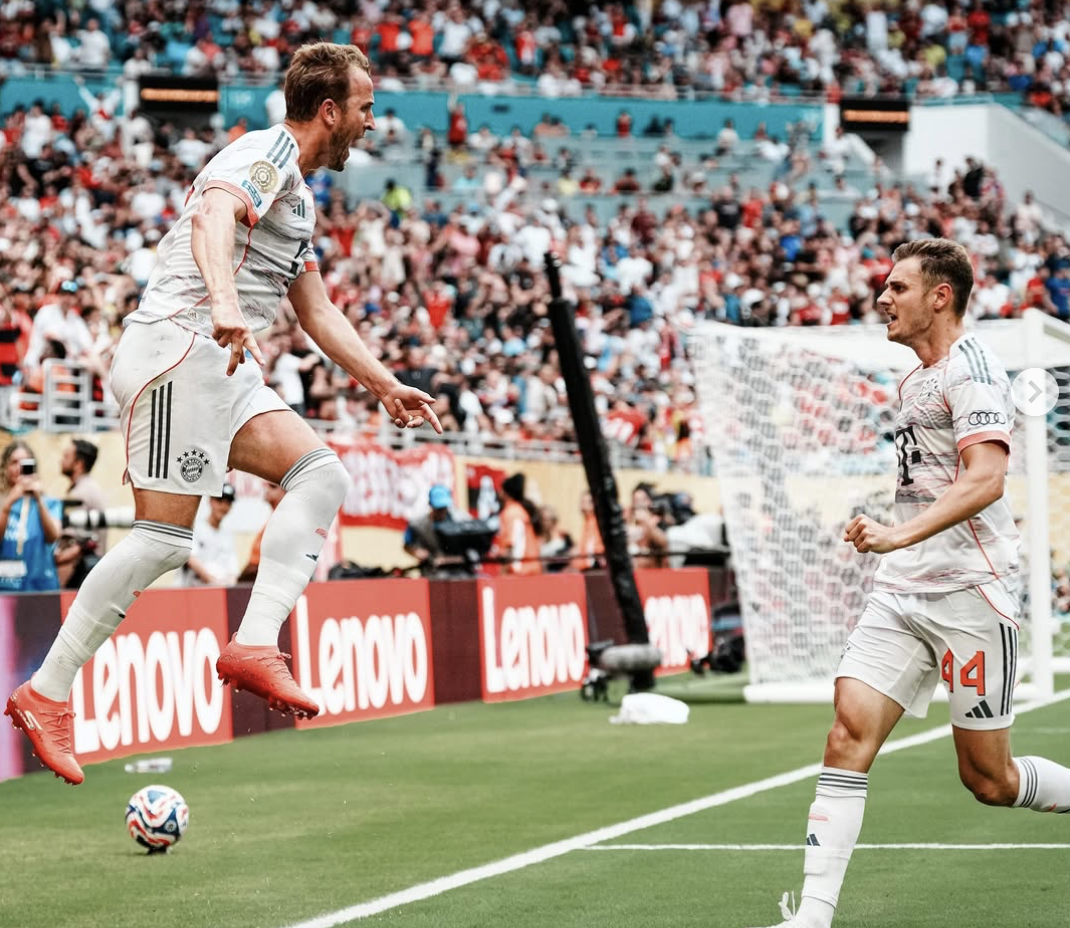 Fotografía de Harry Kane del Bayern Munich celebrando el primer gol contra Flamengo, en el Mundial de Clubes (EE.UU.). EFE/EPA/ Cristobal Herrera-Ulashkevich
