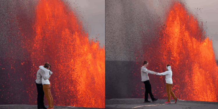 Le propone matrimonio a su novia frente al volcán Kilauea en erupción y la imagen se vuelve viral