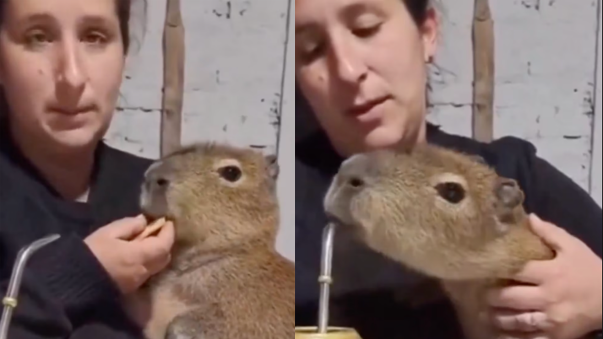 El clip, que ya acumula más de 10 mil reproducciones y cientos de comentarios, muestra escenas que han dividido opiniones: desde el momento en que el capibara intenta beber mate directamente de la bombilla, hasta cuando acepta una galletita de forma natural.