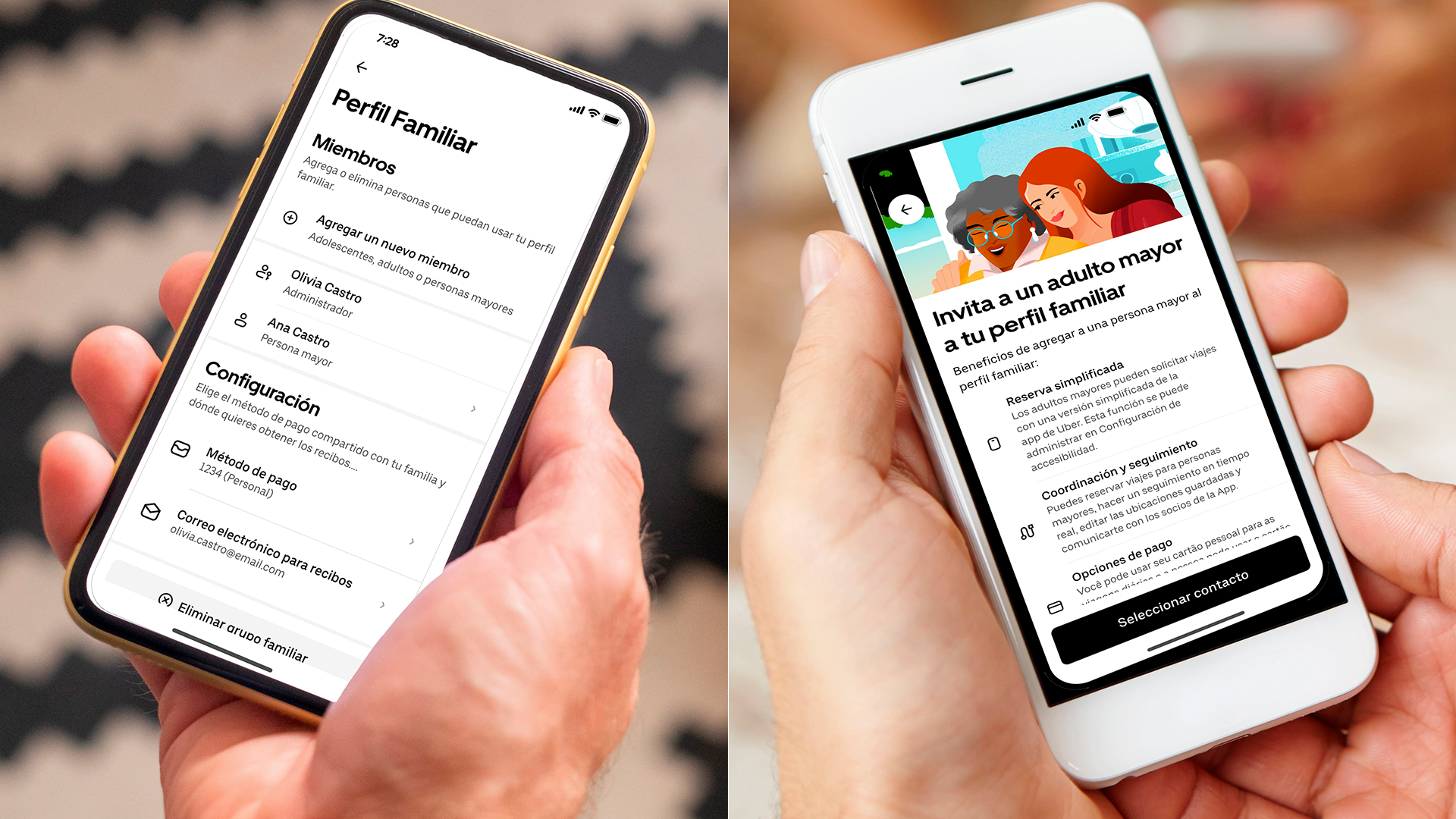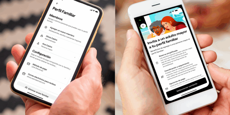 A través del apartado “Perfil familiar”, los usuarios pueden crear una cuenta especial para personas mayores, la cual incluye texto más grande, menos botones, destinos frecuentes y seguimiento en tiempo real. Los familiares también pueden gestionar pagos y ayudar con la solicitud de viajes desde sus propias cuentas.