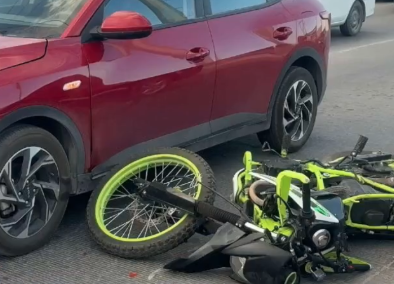 El accidente ocurrió cuando el joven motociclista no se percató del parpadeo del semáforo en rojo y aceleró de manera imprudente, cortando el paso a otro automovilista que sí respetaba la señalización establecida.