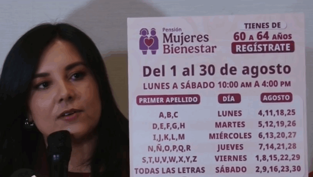 Juárez. — El Gobierno Federal anunció oficialmente el periodo de registro para que mujeres de entre 60 y 64 años puedan incorporarse al programa de Pensiones Bienestar, el cual se llevará a cabo del 1 al 30 de agosto en módulos asignados.