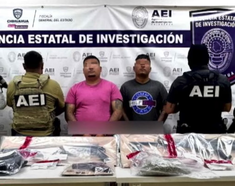 Juárez.- Agentes investigadores de la Fiscalía General del Estado realizaron la detención de dos sujetos en posesión de armas de fuego y droga durante un operativo en la colonia Renovación II.