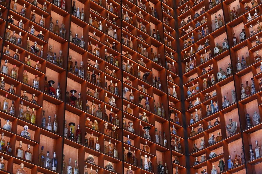 Las empresas donaron las botellas para que se instalaran en un espacio arquitectónico equivalente a tres pisos de altura, a la entrada del centro cultural donde destacan diseños clásicos hasta innovadores como envases de cerámica con forma de guitarra, de caballo, de la ‘Catrina’, que representa a la muerte, o de cabeza de jaguar.