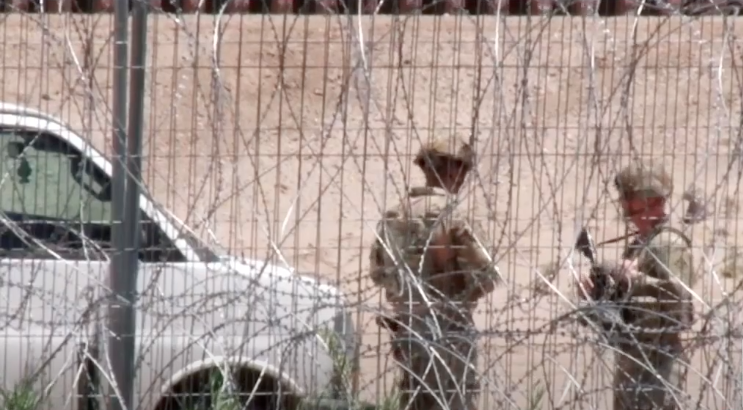 El Paso, Texas.-Al mediodía de este jueves, elementos del Ejército de Estados Unidos se movilizaron en la zona fronteriza para continuar con los operativos de vigilancia, reforzando la seguridad con la colocación de alambre de navajas e inhibidores de drones.
