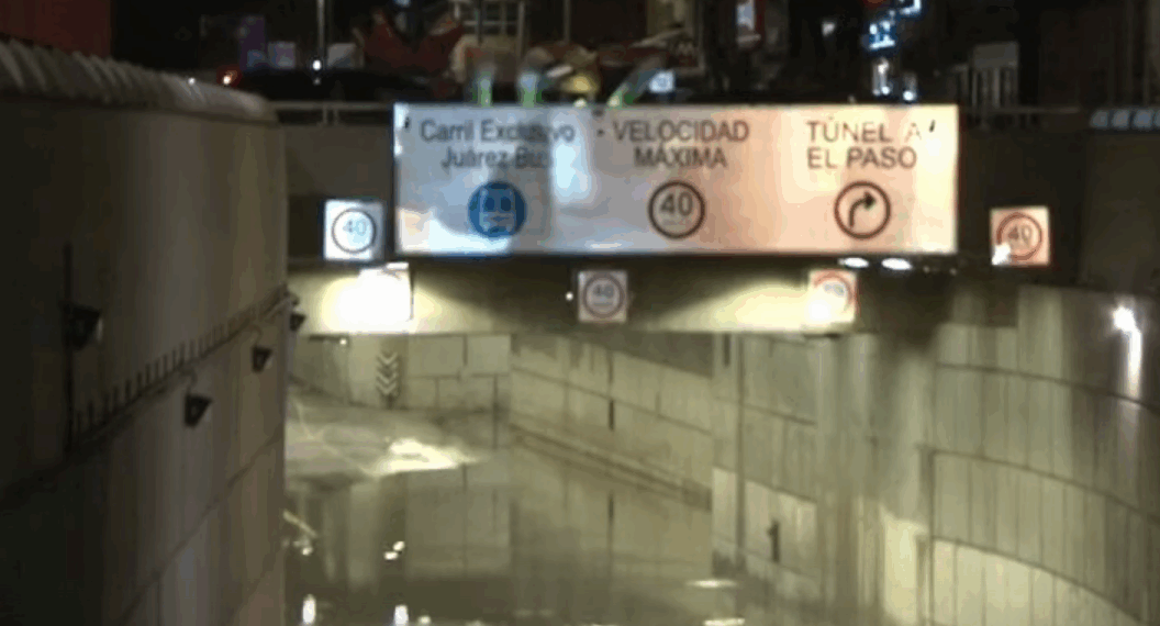 Juárez.– Las intensas lluvias registradas este lunes provocaron afectaciones en múltiples vialidades de la ciudad, entre ellas la avenida 16 de Septiembre, donde el túnel vial ubicado bajo el Centro volvió a inundarse, generando caos vehicular y obligando al cierre temporal de la zona.