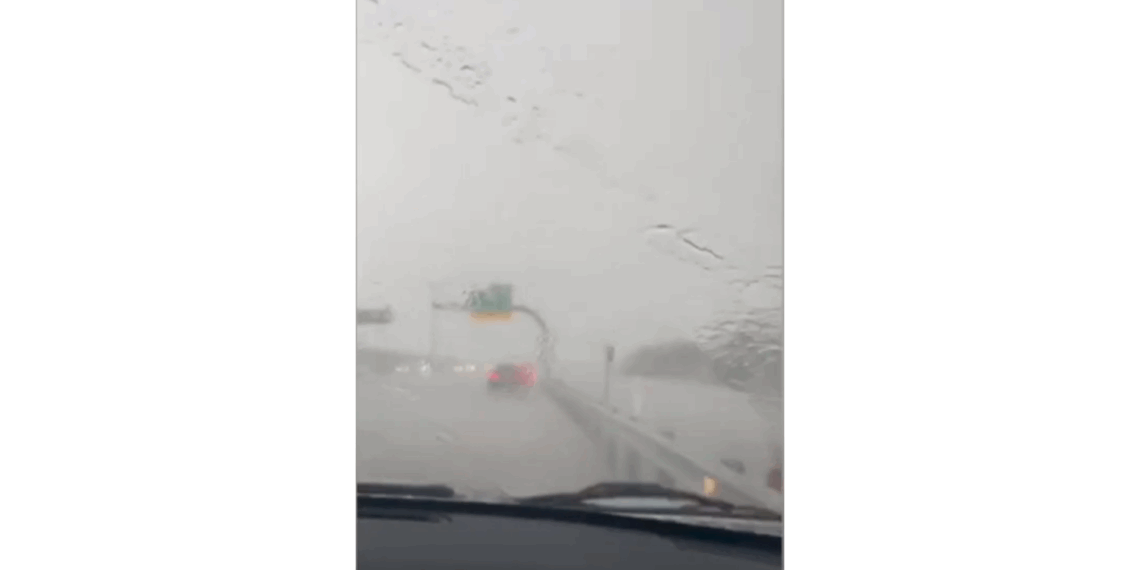 Uno de los automovilistas compartió un video en el que se observa la intensidad de la lluvia. En las imágenes, se puede apreciar cómo algunos vehículos frenan por completo ante la falta de visibilidad, a pesar de tener los limpiaparabrisas funcionando a máxima velocidad.