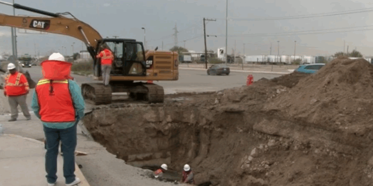 La JMAS informó que actualmente se trabaja en la reposición de un tramo de 8 metros de tubería subterránea con un diámetro de 1.2 metros, labores que continúan activamente para restablecer el sistema lo antes posible.