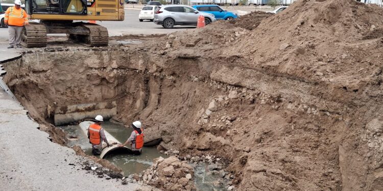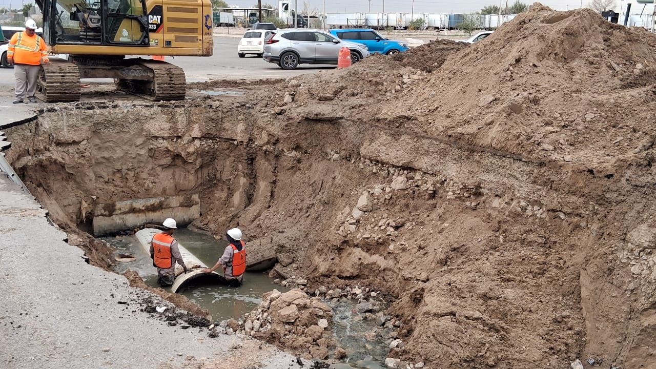 JMAS repara hundimiento en colector Candelaria, al suroriente de Juárez