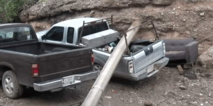 Juárez.– Las intensas lluvias que se han registrado en Ciudad Juárez durante este mes provocaron el debilitamiento estructural de un poste de concreto perteneciente a la Comisión Federal de Electricidad (CFE), el cual terminó colapsando y cayendo sobre una camioneta que se encontraba estacionada.