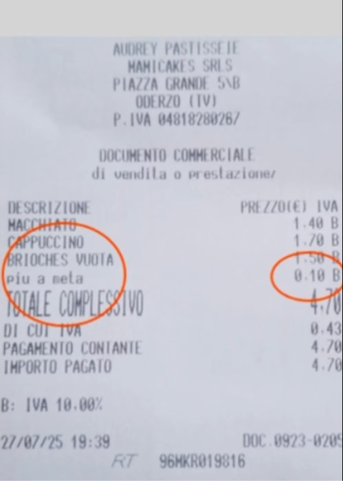 Café en Italia cobra 10 céntimos por partir un croissant y desata indignación en redes