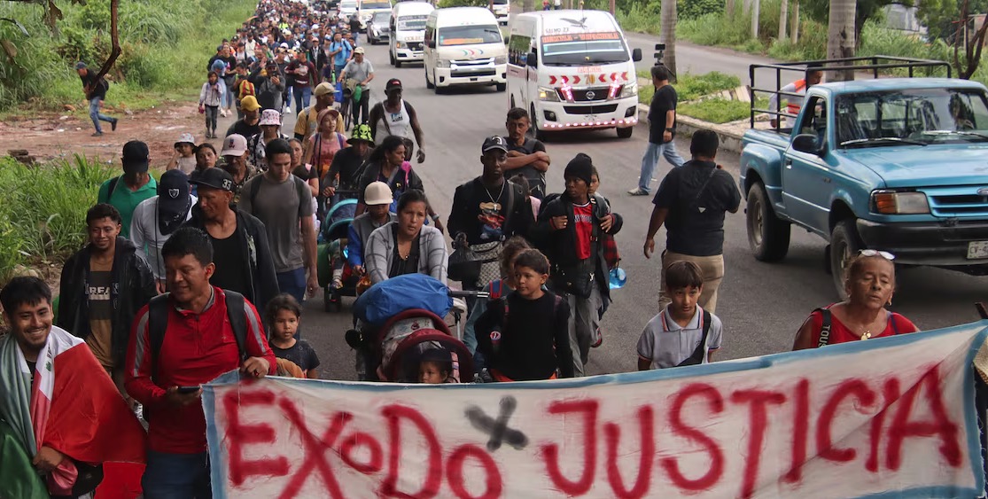 Caravana de 300 migrantes parte de Tapachula rumbo al norte de México