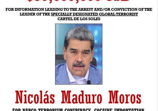 Maduro enfrenta desde 2020 cargos federales en Estados Unidos por narcoterrorismo y conspiración para importar cocaína. En ese año, bajo la administración de Trump, se ofreció inicialmente una recompensa de 15 millones de dólares, cantidad que posteriormente el gobierno de Joe Biden incrementó a 25 millones.